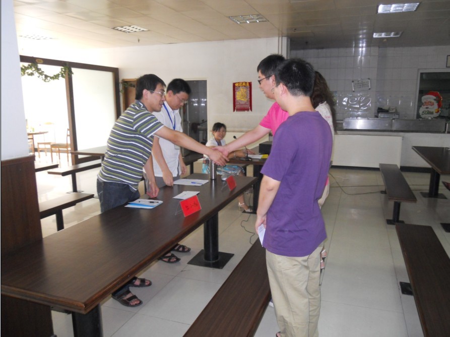 大会进行到最后,公司领导对第二季度的先进个人王亚军、武龙龙,和优秀团队许敏组进行了表彰,同时也宣布了匿名评选出的四周年征文的一、二、三等奖,他们分别是地理信息部的李翠叶(一等奖);地理信息部的韩艳敏、陈新刚和三维部的李欣(二等奖);地理信息部的侯绒侠、许敏、冯作婷、石瑞瑞、刘书冬(三等奖),所有参与此次征文活动的人员均领取了电影票代金券。